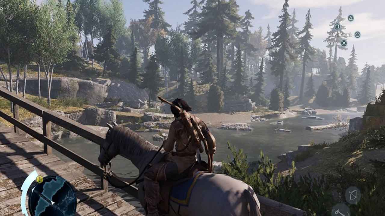 اما با وجود این موارد، Assassin’s Creed III هنوز هم از حیث گیم‌پلی چیز‌هایی برای ارائه کردن دارد. مراحل مربوط به دریا و کشتی هنوز هم پس از گذشت این همه سال و تکرار شدن در نسخه‌های دیگر، جذابیت خاص خود را دارند و سیستم مخفی‌کاری بازی هم با اینکه گاهی تحت‌تاثیر همان مشکل هوش مصنوعی قرار می‌گیرد، اما باز عملکرد قابل قبولی دارد و مخصوصا اینکه سازندگان در نسخه ریمستر بهبود‌هایی هم برای جنبه‌های مخفی‌کاری در نظر گرفته‌اند تا کمی به نسخه‌های مدرن‌تر مجموعه شبیه باشند. حتی رابط کاربری بازی هم دست‌خوش تغییراتی شده و برای مثال جهت حرکت دشمنان را می‌توانید روی مینی‌مپ بازی مشاهده کنید یا در حین درگیری‌ها، با استفاده از مینی‌مپ می‌توان راحت‌تر از قبل مسیر‌های فرار و مناطقی را که می‌توان در آن‌ها مخفی شد، پیدا کرد. جدا از این مواردی مثل شکار کردن، ساخت‌و‌ساز و گشت و گذار در محیط‌های زیبای آن دوره از آمریکا هم جذابیت‌های خاص خود را دارند و با‌وجود گذشت هفت سال از انتشار، Assassin’s Creed III هنوز هم می‌تواند گیم‌پلی قابل قبولی به مخاطبش ارائه بدهد.