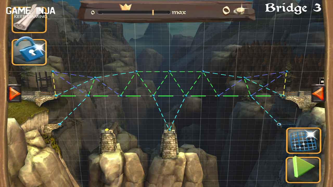 این بازی از پل های آسان با فاصله های کم شروع می شود و رفته رفته با پشت سر گزاشتن و ساختن پل ها یکی پس از دیگری که شما مهارت بیشتری هم در ساخت پل ها و حفظ مقاومت پل با‌ مصالح موجود به دست می آورید و رفته رفته تجربه کافی را کسب‌ می‌ کنید و مراحل هم سخت‌تر می شود یعنی فاصله ها دور و ‌مصالحی که به آن دسترسی دارید کم تر می شود که شما باید با حساب کردن و انتخاب روش چینش منطقی مصالح تعادل را در پل حفظ کنید و نیرویی که به پل وارد می شود را پخش کنید تا پل نریزد .