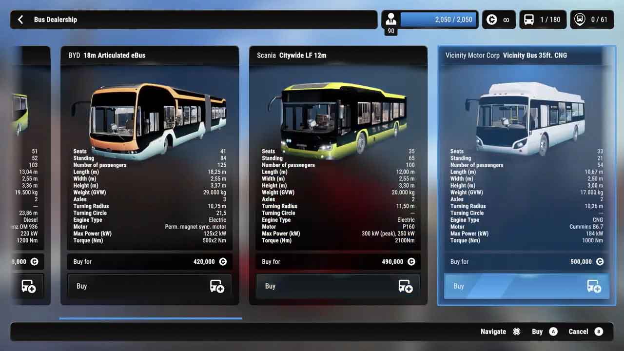با خرید اتوبوس و رانندگی با آنها، شهرت و پول بیشتری به دست می آورید. با پول می توانید مسیرها و کارفرمایان جدید را بخرید یا باز کنید و به مناطقی که قبلا غیر قابل دسترسی بود، بروید. در مجموعه 10 مدل اتوبوس مختلف برای انتخاب وجود دارد که برای دسترسی به آنها فقط داشتن پول زیاد کافی نیست، شما همچنین باید سطح یا لول مورد نیاز برای رانندگی با آن اتوبوس ها را هم داشته باشید تا بتوانید از آنها استفاده نمایید. با رانندگی مطمئن و رعایت قوانین راهنمایی و رانندگی و همچنین انجام کامل ماموریت ها می توانید سطح خود را افزایش دهید. شما علاوه بر شغل رانندگی، وظیفه مدیریت و اداره یک شرکت حمل و نقل را نیز بر عهده دارید که باید این وظیفه را هم به نحو احسنت انجام دهید. با پیشرفت در بازی و باز شدن مسیرهای جدید، می توانید قفل گزینه های سفارشی سازی اتوبوس ها را باز کنید که تنوع زیادی در بخش گیم پلی ایجاد می کنند.