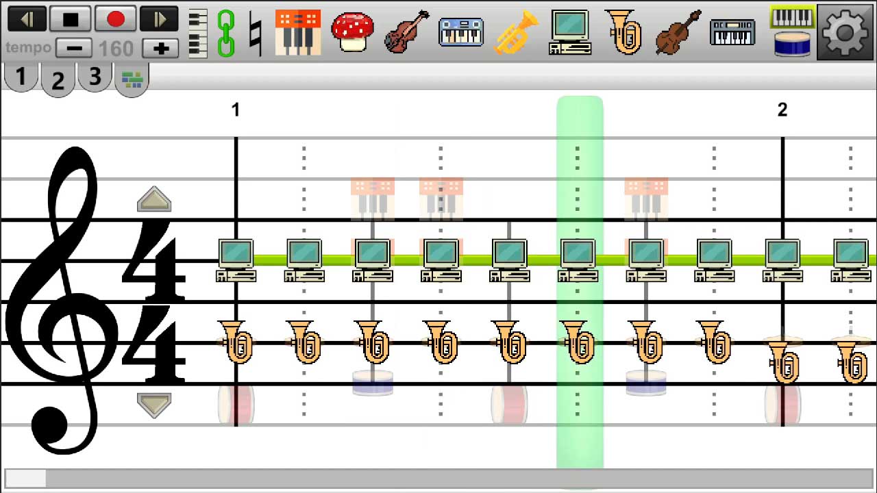 وقتی که در مورد سبک مورد نظر خود تصمیم گرفتید، یک صفحه موسیقی خالی به شما ارائه می شود که جزئیات زیادی دارد، با 263 میله یا نوار آماده پر کردن، به این معنی که موسیقی زیادی برای نواختن وجود دارد. این ویژگی به افراد علاقمند و خلاق اجازه می دهد تا قطعات موسیقی تقریباً با هر اندازه ای را ایجاد نمایند.