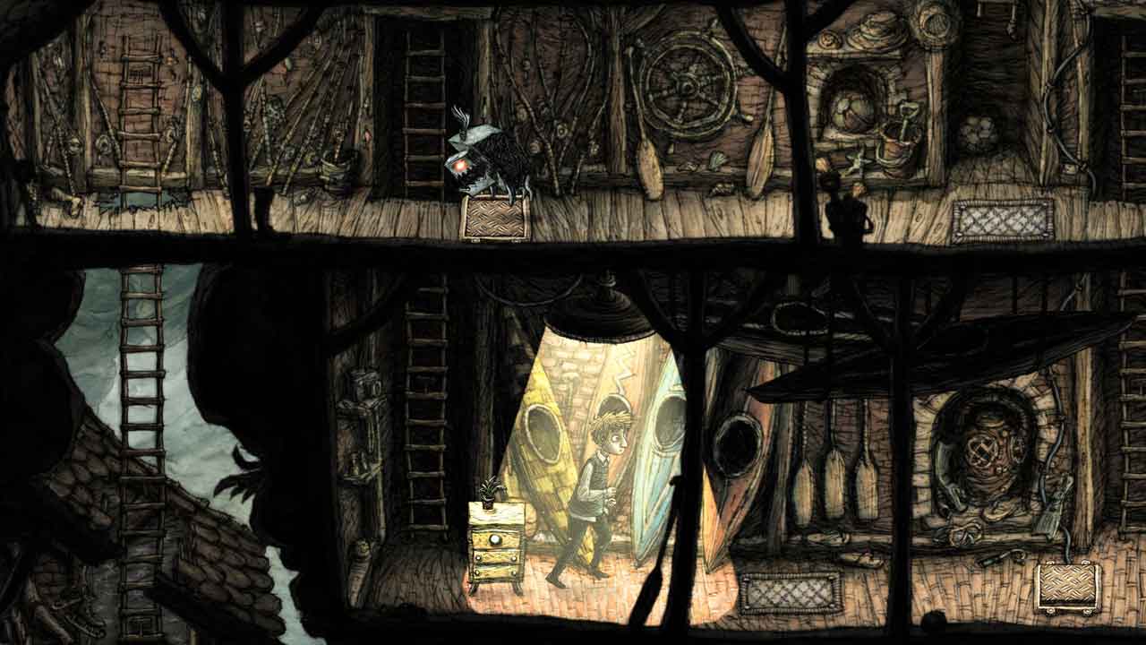 داستان بازی بسیار جالب اما در عین حال ساده است،در ابتدای بازی یک پسر را مشاهده میکنیم که در حال مطالعه است که ناگهان لامپ اتاق او شروع به خاموش و روشن شدن میکند و بخشی از کاغذ دیواری کهنه از روی دیوار جدا میشود.در این نما سازندگان به هر حال خواسته یا ناخواسته مفهوم فقر را به تصویر کشیده اند.اتاق به رنگ تیره طراحی شده است که نشان دهنده ناراحتی و افسردگی محیط است که ریشه در همان فقر دارد این قسمت از بازی پر مفهوم ترین قسمت بازی است.استفاده از فضای تیره برای نشان دادن حالت شخصیت بازی عملی بسیار خلاقانه است و هوشمندی سازندگان بازی را نشان میدهد.همین رساندن حالت شخصیت با محیط بازی یکی از نکات مورد توجه منتقدان است.این کار بسیار حساس است و کمتر کسی دست به چنین عمل ریسکی دست میزند.اما سازندگان با پذیرفتن بازخورد های آن،این پروژه را عملی کردند که باعث موفقیت بیشتر بازی شد.به داستان باز می گردیم،پس از کم و زیاد شدن نور پسر به سراغ لامپ میرود و آن را سفت میکند تا شاید مشکلش حل شود،با انجام این گار برای مدتی لامپ درست کار میکند اما دوباره شروع به خاموش و روشن شدن میکند.پسر نیز دوباره همان عمل را تکرار میکند اما ناگهان لامپ می ترکد.لازم به ذکر است که این لامپ و عمل پسر بسیار پرمعنا و مفهومی است که در مقال نمی گنجد و ما به صورت سطحی آن را برای شما بیان میکنیم.قطع و وصل شدن لامپ نشان دهنده مشکلات در زندگی است و وقتی که پسر میخواست با تلاش اندک جلوی مشکل خود را بگیرد،در ابتدا موفق است اما دوباره همان مشکل با عظمتی بزرگ تر به سراغش می آید و او باز هم میخواست تا با روش اولیه جلوی مشکل را بگیرد اما دیدیم که مشکل بر او غلبه کرد.پس از آن دیدیم که دریچه ای در پس کاغذ دیواری مشاهده کرد این المان بازی استعاره ای از راه حل برای مشکلات بزرگ است.پسر با پیدا کردن چراغ قوه وارد دریچه میشود به امید اینکه از این مشکل رهایی یابد.در ادامه مسیر خود به نردبان بلند میرسد،یکی از بزرگترین نکات مفهومی بازی در این بخش است،پسر ابتدا یک سنگ را به داخل چاهی که نردبان در آن قرار دارد می اندازد تا ارتفاع آن را اندازه گیری کند،در اینجا اندازه گیری ارتفاع چاه همان اندازه بزرگیِ ریسکی است که پسر میخواهد انجام دهد اما پسر پشیمان میشود ولی ناگهان بر روی نردبان سقوط میکند و باید تا پایان ریسک خود را ادامه دهد.بازی از نظر مفهومی بسیار قابل بررسی است اما متاسفانه منابع و شرایط ما محدود است و بازی نیز خیلی طولانی است و بررسی جز به جز بازی امکان پذیر نیست اما تجربه آن بسیار برای شما لذت بخش خواهد بود.