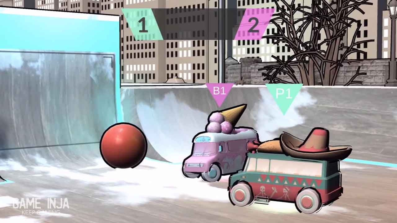 اما بازی Foodtruck Arena از آن دسته بازی هایی است که توسعه دهنده آن به جای راکت لیگ که از ماشین های اسپرت برای ضربه زده به توپ بازی استفاده می کرده اند دوست دارد از کامیون های سنگین برای انجام این بازی استفاده کند. کامیون هایی که با طراحی های مختلف سعی در این دارند که در زمین هایی که به لحاظ گرافیکی مشکلات خودشان را دارند توپ بازی را درون دروازه ها قرار دهند.