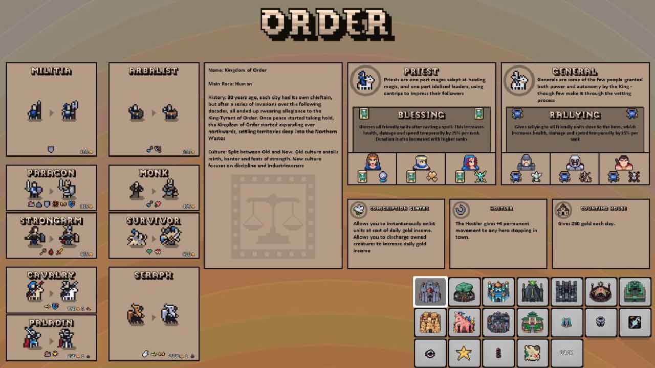 با توجه به سیستم انتخاب واحد، هر جناح دارای شش طبقه از واحدهای مرتبط با جناح خود است که برای استخدام در شهرهای همسو با آن جناح در دسترس هستند. بسته به هر جناح خاص، در هر سطح معین، شما ممکن است این گزینه را داشته باشید که از بین دو واحد مختلف برای تقویت ارتش خود انتخاب کنید. در مقام مقایسه، سری Heroes of Might and Magic معمولاً به بازیکنان هفت طبقه واحد جنگی میداد، اما هیچ انعطافپذیری در انتخاب در هر ردیف وجود نداشت. این مکانیزم گیم پلی Hero’s Hour، نه تنها باعث میشود که هر جناح تنوع بیشتری داشته باشد، بلکه همچنین به شما این فرصت را میدهد که با تصمیمات حریف و تغییر چشمانداز استراتژیک خود سازگار شوید. چنین سیستمی لایه جدیدی از پویایی رقابتی را به این نوع بازی استراتژی اضافه می کند.