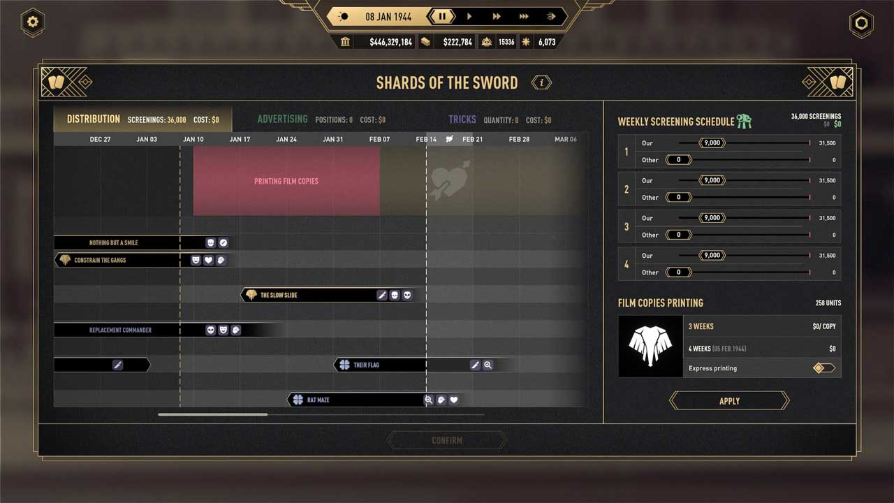 با تکمیل مراحل نوشتن فیلمنامه، مستقیماً به مرحله پیشتولید می روید – تنها یکی از مراحل متعددی که برای بیرون راندن یک فیلم لازم است. از آنجا، به مرحله تولید، پستولید، چاپ، توزیع، نمایش اولیه و سپس یک بازه زمانی چهار هفتهای پر تنش برای سود بالقوه میرسد. زیاد به نظر میرسد؟ به این دلیل است که همینطور است و شما این کار را برای هر فیلم انجام خواهید داد. شما همواره سعی میکنید اعضای تیم خود را وفادار و راضی نگه دارید (تا توسط رقبا شکار نشوند) و استودیوی خود را به سمت تبدیل شدن به یک بازیگر بزرگ هالیوود سوق دهید.