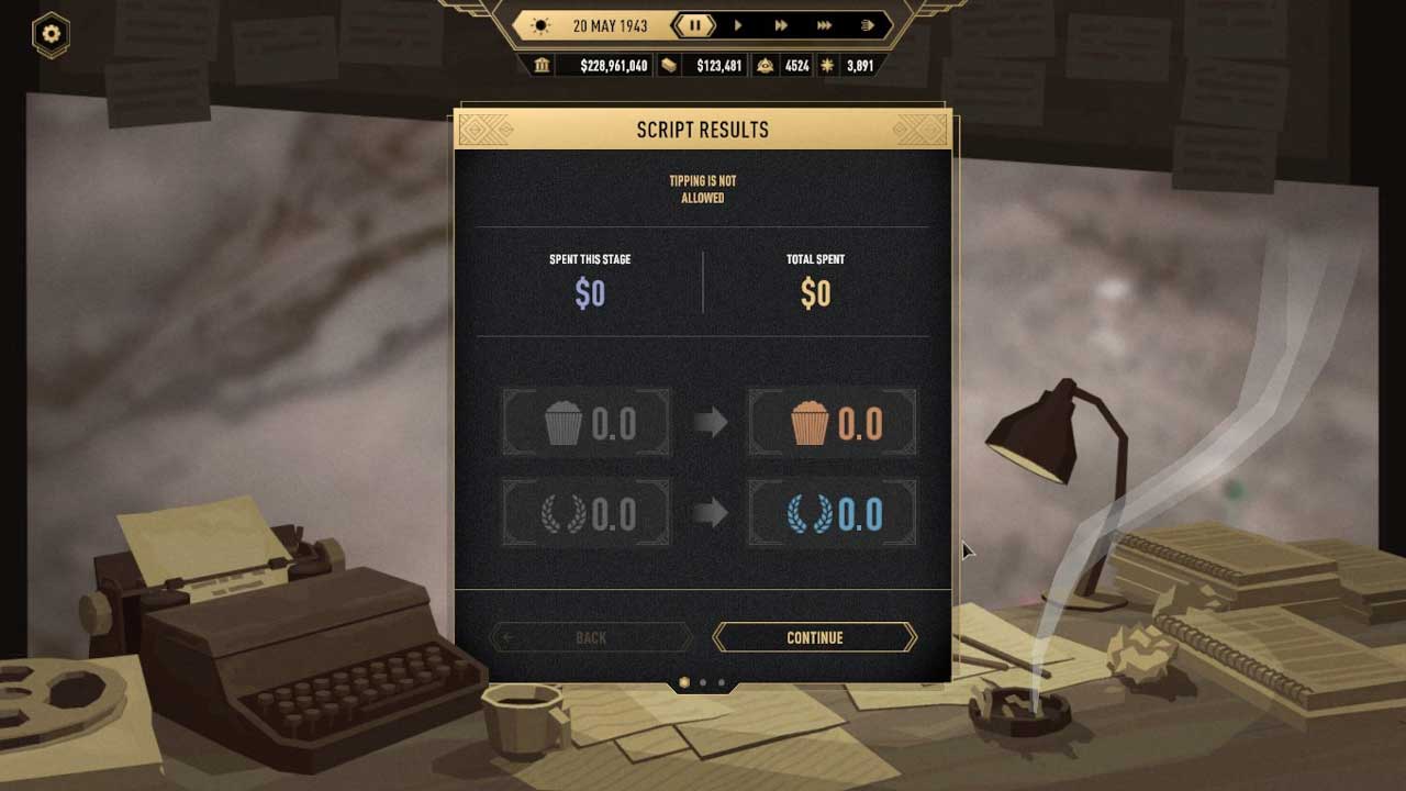 رویدادهای تصادفی که بر شادی کارمند شما، کیفیت فیلم شما و غیره تأثیر میگذارند، جالب هستند و به نظر میرسد که توسعهدهندگان تعداد بیشتری از آنها را اضافه خواهند کرد، زیرا احتمالاً میتوانند به درستی در بازی گنجانده شوند. در حال حاضر تعدادی از آنها تکراری هستند، اما این یک مشکل قابل حل است. همچنین متوجه خواهید شد که کارمندان شما دائماً ناراضی خواهند بود زیرا تنها راه افزایش شادی آنها، تحقیق و خرید هدایای گرانقیمت است که فقط میتوانید هر از گاهی به آنها بدهید. و این بیشتر بر کیفیت فیلم شما و میزان درآمد شما تأثیر میگذارد.