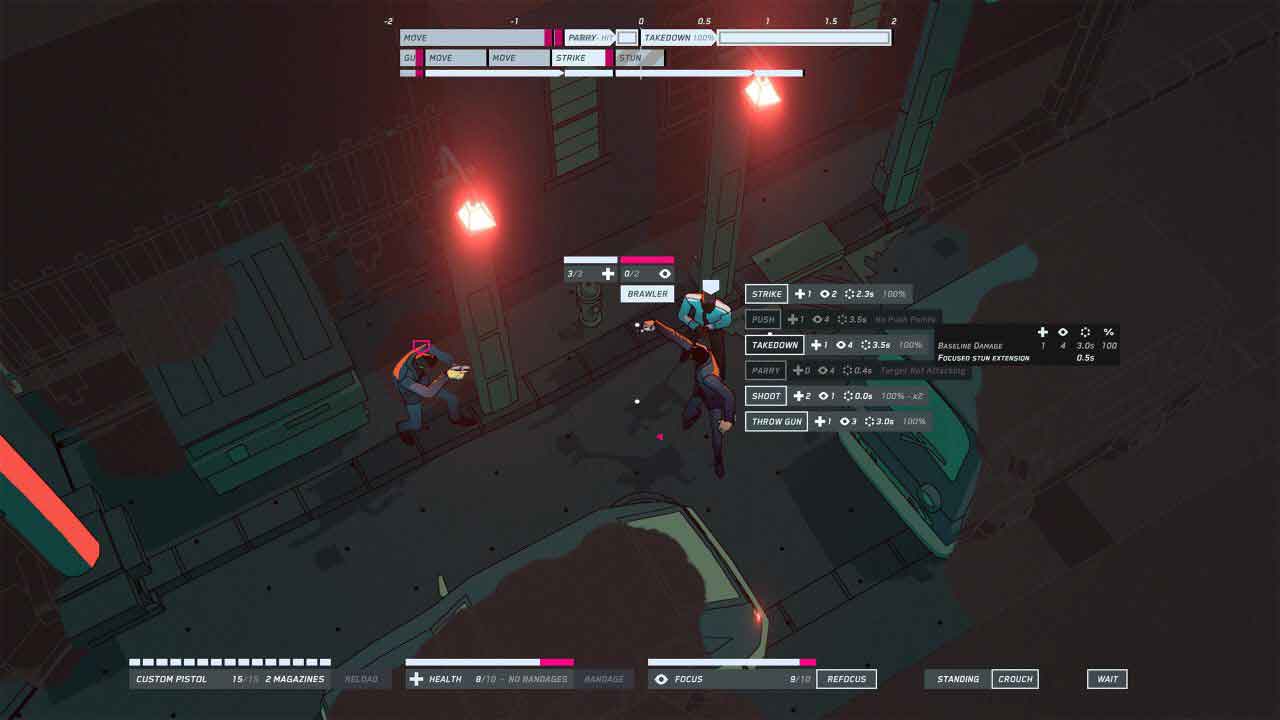 شما در بازی و هنگام حمله به دشمنان با یک لیست انتخاب روبرو خواهید شد. سیستم مبارزات به صورت نوبتی بوده و شما در زمان مشخص شده خود با انتخاب دشمن باید انتخاباتی مثل شلیک به او یا پرتاب کردن اسلحه و یا در صورت نزدیک بودن به آن گیزنه هایی مثل خلع سلاح کردن و کشتن دشمن به روش های مخفی کاری را انتخاب کنید. نسبت سختی بازی آنچنان بالا نیست و شما در حین تجربه حدودا 6 یا 7 ساعته خود با چندین باس در بازی روبرو خواهید شد. همچنین پس از اتمام هر مرحله گزینه ای برای مشاهده دوباره آن برای شما در دسترس است که این بار به جای نمای از بالا که در آن بازی میکردید از نمای تقریبا سوم شخص حرکات شما به صورت یک انیمیشن نشان خواهد داد. هوش مصنوعی دشمنان نیز آنچنان الا نبوده و همین امر کمی بازی را بیش از حد انتظار آسان خواهد کرد. اما همچنان جذابیت بازی حفظ شده و شما حس و حال فیلم و درگیری های کیانو ریوز در آن را دریافت خواهید کرد.