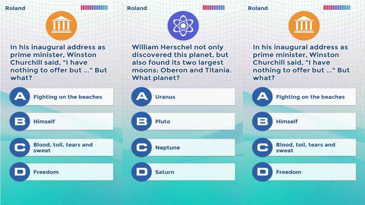 Knowledge Trainer: Trivia همچنین به شما امکان می دهد تا با سه بازیکن دیگر بازی کنید ، اما قالب تقریباً یکسان است. از طرف صوتی ، بازی پیش زمینه رشته ای آرامش بخش و حلقه ای را فراهم می کند. تنها گزینه افزایش یا کاهش صدا و چیز دیگری نیست. و البته رابط کاربری وجود دارد که به شما می گوید نقاط قوت و ضعف شما کدام است و شما می توانید برای پاسخ به این سؤال ، کدام مباحث را انتخاب کنید.