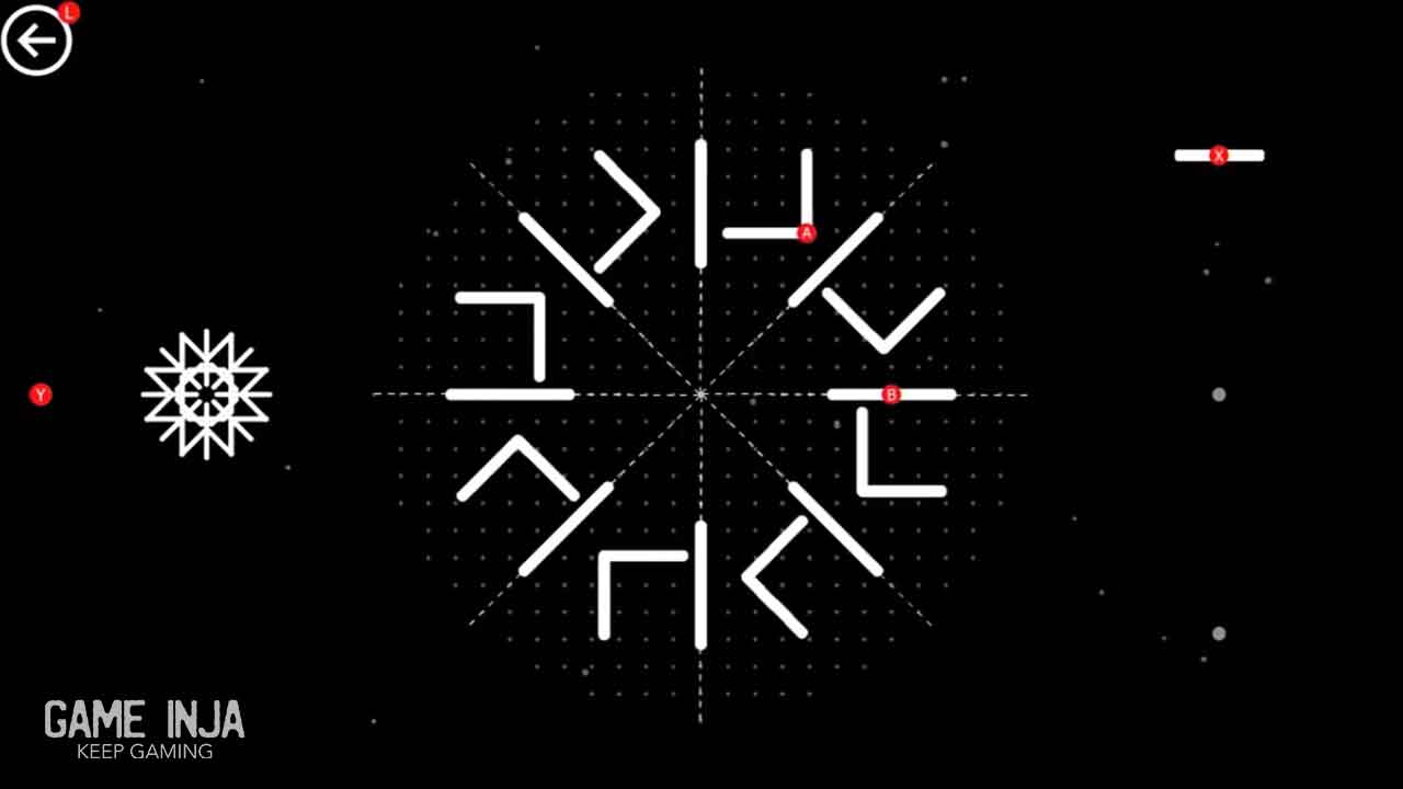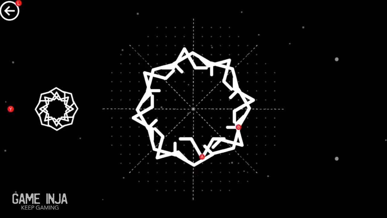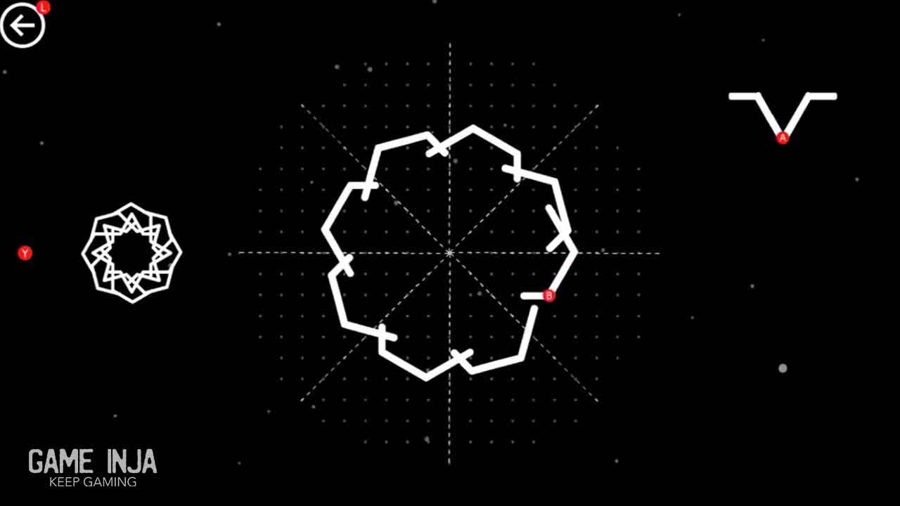 در سمت راست تصویر نیز شکل های کوچک تری که چند خط شکسته در اصل هستند به صورت نیم خط ها و خط هایی (که در مراحل بالاتر به صورت چند تایی نمایش داده می شوند) پدیدار می شوند. شما با انتخاب آنها و قرار دادنشان بر روی نمودار اصلی و میانی بازی شکل هندسی جدیدی را که اصلا شبیه به شکل اصلی نیست در اختیار خودتان قرار می دهید. حال با استفاده از گرفتن نقطه ثقل مناسب از شکل درهم ایجاد شده آن را بر روی نقطه های نمودار شکل و سطح به چهار جهت ممکن می توانید حرکت دهید. با هر حرکت شما شکل اصلی به صورت درهم و پیچیده ای که در مجموع منظم به نظر می رسند شروع به ساخت یک شکل بزرگتر می کنند که از لحاظ دیداری به شکل منتظم و خاصی زیبایی دارند ولی نکته اصلی ماجرا این است که شکل نهایی که باید با تکان دادن آنها ایجاد کنید باید شبیه به شکلی باشد که در سمت چپ بازی به صورت شکل درخواست داده شده دربیاید.