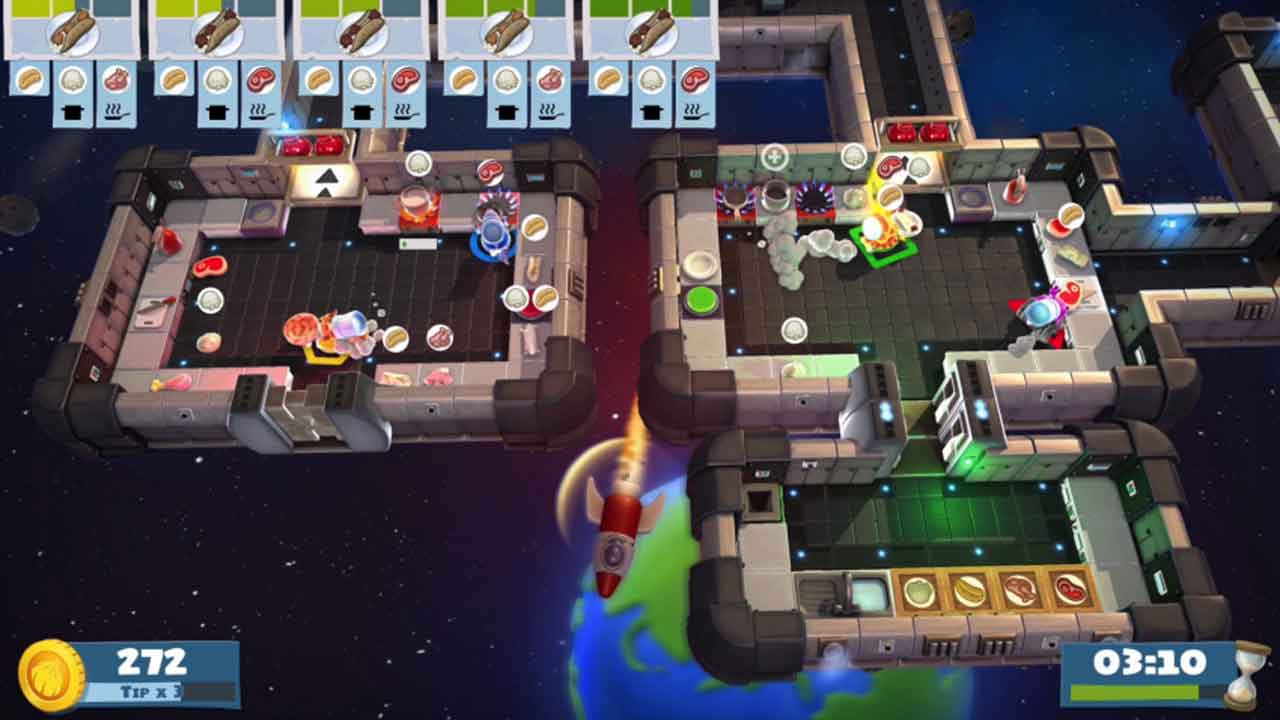 در این بازی شما و دوستانتان با توجه به سفارش ها که گاهی یک سالاد ساده با خرد کردن کاهو و گوجه و خیار و گاهی یک رسپی پیچیده تر مثل انواع سوشی یا کیک و یا همبرگر با کاهو و گوجه و پنیر است، و هرکدام دستور پخت و روش آماده سازی خودشان را دارند؛ با همکاری، گفت و گو و تبادل اطلاعات هرکدام قسمتی از وظایف را بر عهده می گیرید؛ از خرد کردن و آماده سازی مواد اولیه تا پخت و آماده سازی سفارشات، تحویل غذا و شستن ظروف! بله، درست مثل یک آشپزخانه ی واقعی! اما همانطور که قبلا هم گفتم این آشپزخانه ها پر از اتفاقات غیرقابل پیش بینی و chaotic و لوکیشن های عجیب مثل آشپزخانه های معلق در هوا، روی مواد مذاب، میان آب، وسط خیابان شلوغ و حتی بین پرتال های متعدد هستند. که به درجه ی سختی و غیرمنتظره بودن آن میافزاید.