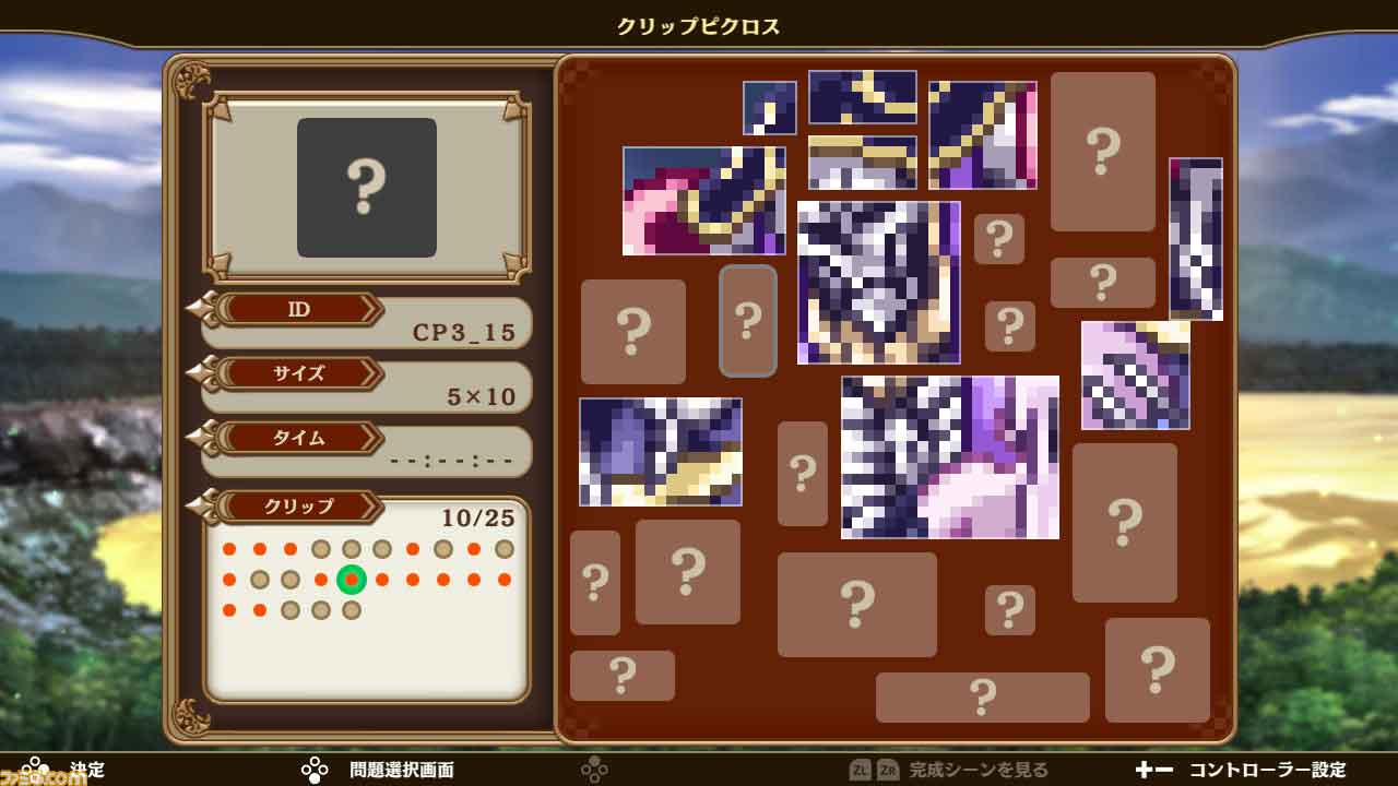 این معماها از معماهای کوچکتر ساخته شده اند که در نهایت برای ایجاد یک تصویر بزرگ جمع می شوند که بسیار سرگرم کننده است. پازل های Mega Picross ، که نحوه نمایش اعداد در شبکه را تغییر می دهند نیز در این عنوان موجود هستند اما حل آنها کاملاً اختیاری هستند و حتی در منو پنهان هستند. هنگامی که نوبت به حل هر یک از معماها می رسد ، اکنون می توانید دکمه R را نگه دارید تا به شما در شمارش مربع ها کمک کند. اگرچه این به نظر می رسد مانند یک اضافه کوچک ، کل روند حل پازل ها را راحت تر و دقیق تر می کند و اگر در بازی های بعدی picross ظاهر نشود ، من آن را از دست می دهم.  هر شخصیت دارای نه پازل Picross معمولی، نه ریمیکس مگا Picross از این نه نفر اول ، سه پازل Color Picross و یک معما بزرگ Clip Picross است. هر یک از این موارد به یک شی، لحظه یا شخصیت از انیمه مربوط می شود و پس از حل آن به یک تصویر ثابت از انیمه برخورد می کنید تا نشان دهید که پازل از چه چیزی الهام گرفته است. پس از حل کافی ، می توانید تصاویر اضافی ویژه را از انیمه ای که در یک گالری مشاهده می شود باز کنید.