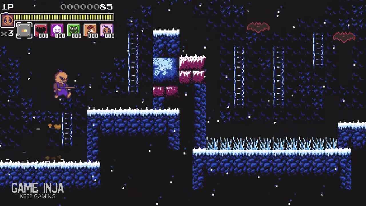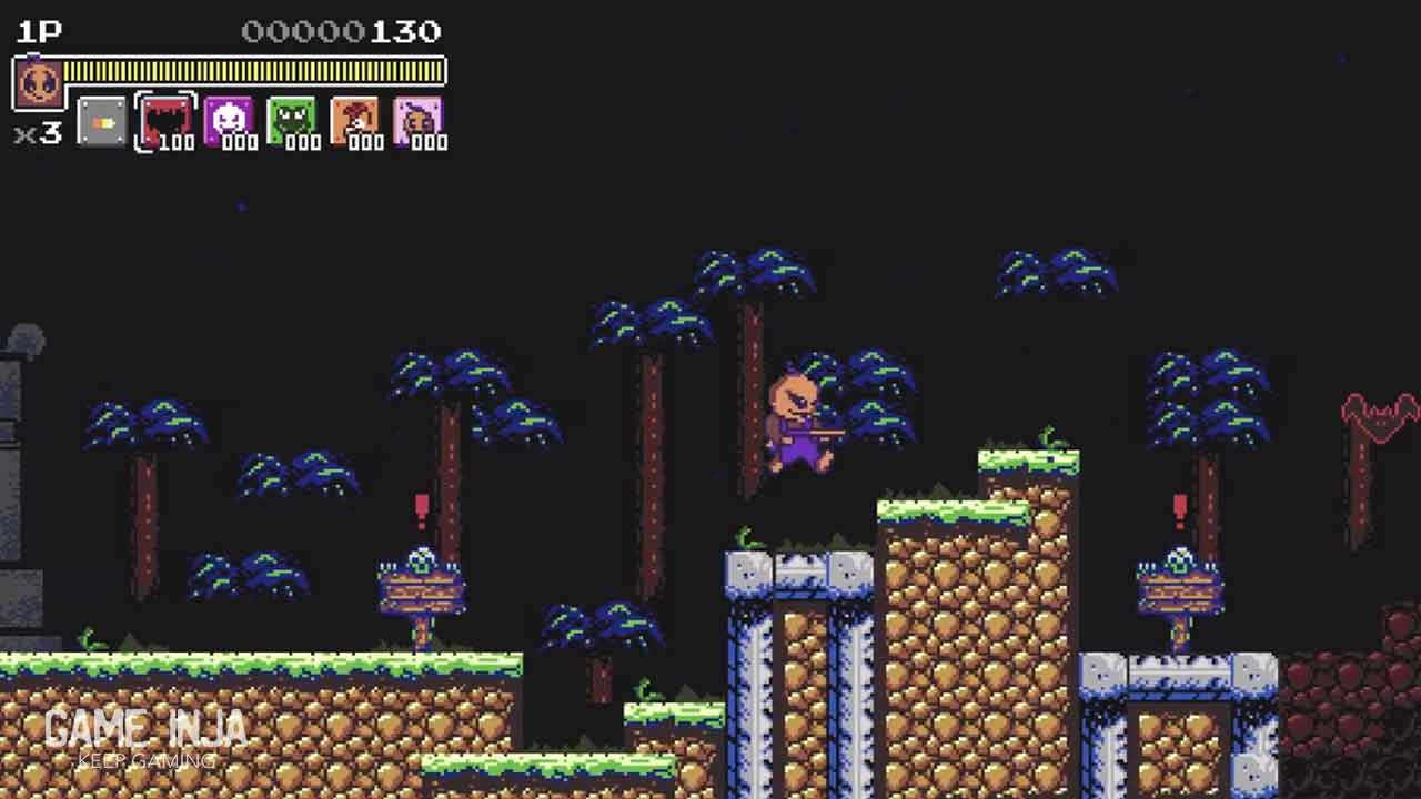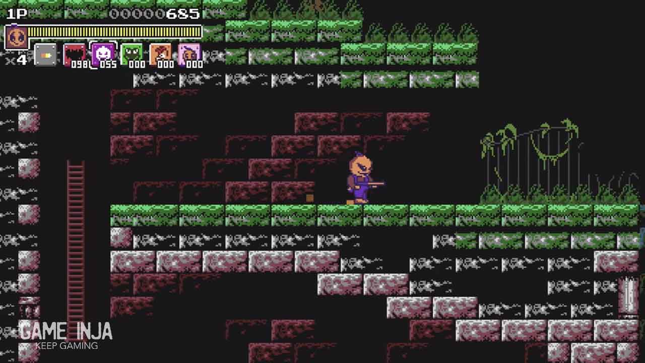 اما در مورد مکانیک های بازی باید گفت که تیراندازی شخصیت اصلی با تفنگ خود به صورت گوشه ای به شکل بسیار آرکید انجام می شود و زاویه شلیک آن نود درجه به شکلی است که برای اینکه بخواهید زاویه های بین این دو را در 45 درجه شلیک کنید مجبورید کارکتر اصلی را به عقب یا جلو حرکت دهید. بعد از این که با فرایند شلیک در بازی Savage Halloween آشنا شدید نوبت به تجربه گیم پلی آن می رسد. در کمال تعجب باید گفت با اینکه بازی بسیار ارزان می باشد و سطح طراحی و دیزاین آن شاید فقط برای یک توسعه دهنده زحمت داشته باشد بازی با روان بودن خاص و بدون باگ غیر منتظره ای اجرا می شود. هر مرحله پر از پله ها و افراد و همینطور باس های مختلف است که خوب بازی در همه آنها را باید بگوییم که می توان بدون هیچ ایراد و مشکلی انجام داد. در مجموع 8 مرحله برای بازی تعریف شده است که خوب نمی توان گفت که مرحله ها طولانی است و برای هر کارکتر در بازی شاید 20 تا سی دقیقه بیشتر طول نکشد که بخواهد بازی را تمام کند.