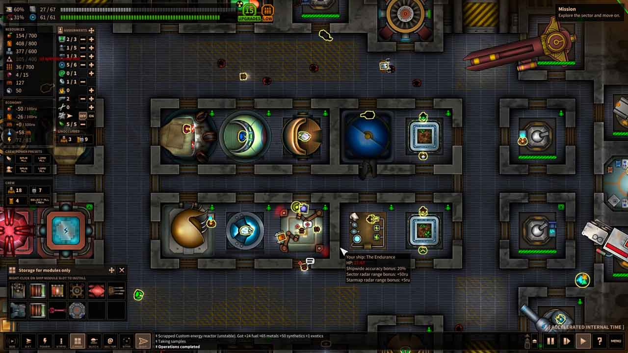 در بازی Shortest Trip To Earth پس از یادگیری مهارت های گفته شده باید نبردهایی انجام دهید جایی که همه گزینه های مهم ماژول و میکرو مدیریت خدمه شما بسیار مهم هستند. هر سفینه دارای تعدادی شیار برای انواع ماژول ها ، از کریوپودها برای خدمه تا خوابیدن و در هنگام سفر است و هیدروپونیک که برای رشد مواد غذایی استفاده می شوند بنابراین وقتی فراموش می کنید که خدمه خود را به کریو بفرستید. چگونگی تنظیم این موارد و قدرت در انتخاب آنها می تواند هنگام سفارش قوم بین آنها ، تفاوت ایجاد کند.