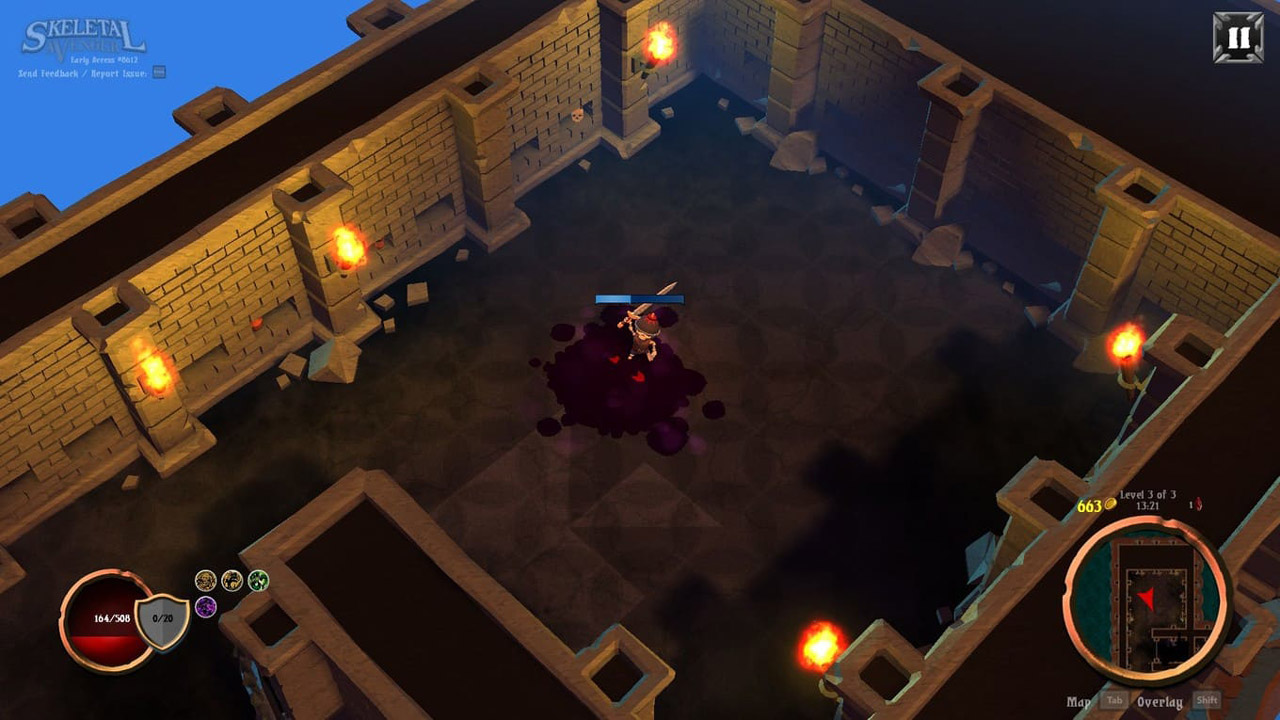 گیم پلی بازی Skeletal Avenger که از قضا آخرین بخش نقد و بررسی مان هم هست، یک روش جدید برای مبارزه های داخل بازی به شما ارائه می دهد! در این بازی با این که شما قابلیت استفاده از سلاح های متفاوت را دارید، اما قوی ترین سلاح شما، سر اسکلتی خودتان خواهد بود!. بازی Skeletal Avenger سیستم مبارزه خیلی جالبی با امکانات شخصی سازی زیادی دارد. هم چنین این بازی کنترل های نرم و روانی هم دارد اما ما به علت باگ های خیلی زیاد در گیم پلی بازی Skeletal Avenger نمی توانیم نمره خیلی بالایی به گیم پلی این بازی بدهیم.