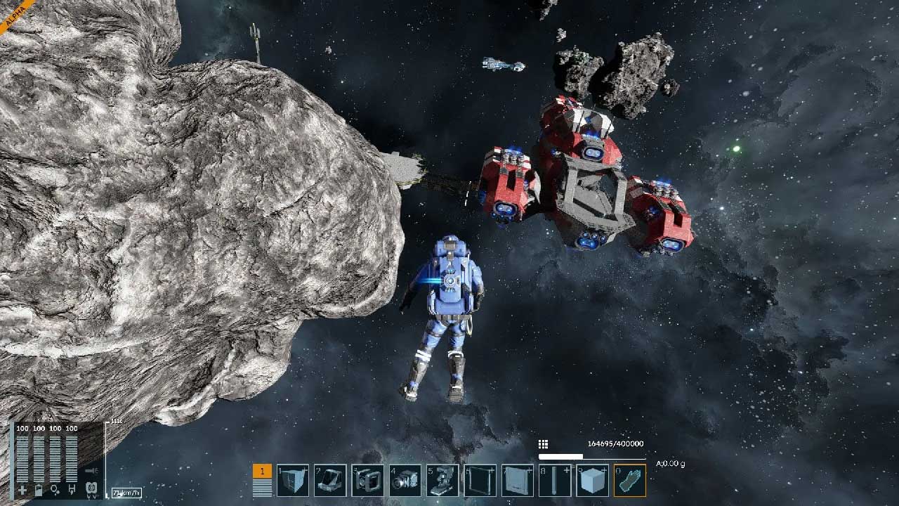 این بازی در هسته خود، همان تجربه سندباکس نسخه اول را حفظ می کند که به خاطر آن شناخته شد. به لطف این ویژگی، به شما این آزادی داده میشود که فضاپیماها را در یک جهان پر از سیارکها و ایستگاههای فضایی طراحی، ساخت و هدایت کنید. حالت Creative تمرکز اصلی در این مرحله است که امکان ساخت نامحدود بدون محدودیت های مدیریت منابع را فراهم می کند. این حالت جذاب، انجام آزمایش ها را تشویق میکند و علاقمندان را قادر میسازد سفینهها و سازههای پیچیده بسازند.