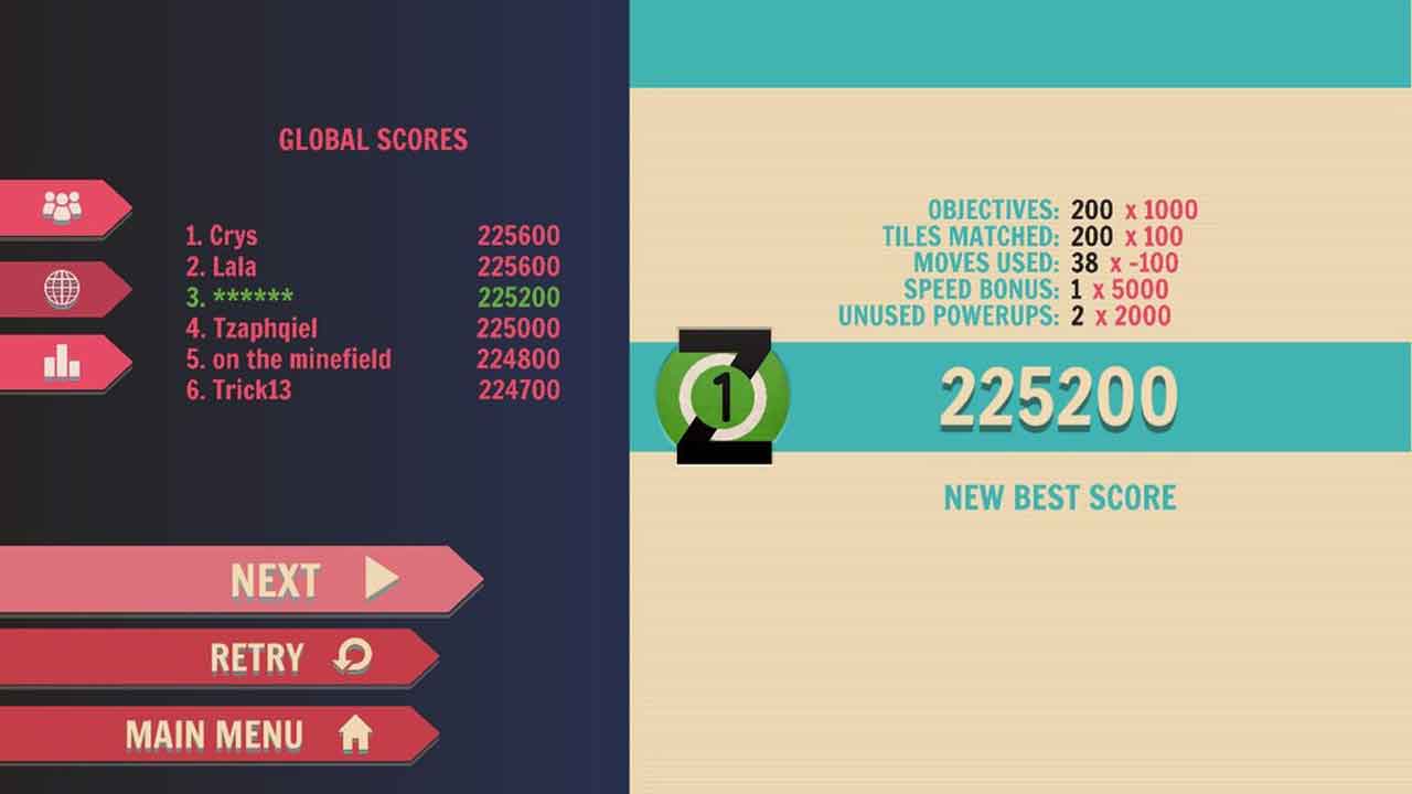 این بازی در سه سطح ساده ، متوسط و سخت قابل انجام می باشد. در واقع هرچه سطح بازی سخت تر باشد ، خانه های موجود در جدول ها ریخته پاش تر هستند. اما اگر می خواهید بدانید روند کلی این بازی به چه صورت می باشد ، باید بگوییم که شما وظیفه دارید خانه های جدول را در ردیف های سه تایی هم رنگ قرار بدهید. هر مرحله دارای جدول های متفاوتی می باشد. هر تغییر در جدول می تواند باعث بهم ریختن کل جدول بشود. در نتیجه شما باید در حرکت دادن خانه های موجود در جدول دقت کنید.