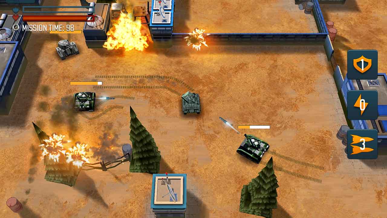 گرافیک بازی کامل و به اندازه است، اما خیلی جالب نیست. تانک ها و بقیه Asset ها در منو بازی و تصاویر خیلی با کیفیت بنظر میرسند، اما انگار که برنامه نویس ها و طراحان بخواهند کار خودشان را راحت کنند و از کار روی جزئیات خسته شده باشند، موقع Battle همه چیز در هم و بر هم میشود. علاوه بر گرافیک متوسط که خیلی چشمگیر نیست؛ موسیقی و بقیه اجزای تصویری کار هم همینطور هستند، کافی و مناسب، اما چیز به یاد ماندنی ای ندارند. Tank Battle Heroes شاید در سال 2018 جزو اولین های این ژانر به شمار میرفت و به احتمال زیاد به همین دلیل هم معروف شد-آن زمان هم بازی متوسطی بود و ویژگی خاصی برای عرضه نداشت- و فروش بالایی گرفت، اما عرضه جدید کاملا فرق دارد و اصلا آن چیزی که همه از ورژن خوب و قدیمی اندرویدی به یاد دارند نیست.