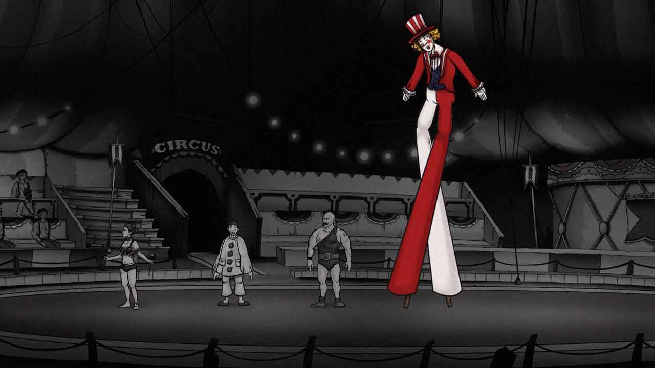 داستان بازی به شدت سطحی نگری کرده است به شکلی که ممکن است در اوایل بازی با خود بگویید چقدر این بازی کلیشه ای و ساده است!محوریت کلی داستان درباره فردیست که پدرش صاحبی سیرکی بزرگ و عجیب است و رویا های بزرگی برای آن سیرک در سر دارد،اما سرانجام زمانش به پایان میرسد و به رحمت خدا میرود!پسر او نیز اوایل تمایلی به ادامه این کار نشان نمیدهد اما با دخالت های برادر همیشه مست پدرش،جک،ناگهان از این رو به آن رو میشود!درحالی که در زندگی واقعی ممکن حتی سال ها ططول بکشد تا فردی که در شوک از دست دادن اعضای خانواده اش است به شغل آن فرد رو بیاورد.اما این یک بازی است و میتوان از این دید آن را نادیده گرفت.قسمت دیگری که کمی اذیت کننده است دیالوگ های تقریبا خطی وار بازی است.به شکلی که از قسمتی از داستان به بعد تمام کار شما راضی کردن تماشگران ویژه با نمایش های متفاوت است.با تمام این مشکلات داستان بازی در سطح حداقل قابل قبولی قرار دارد.