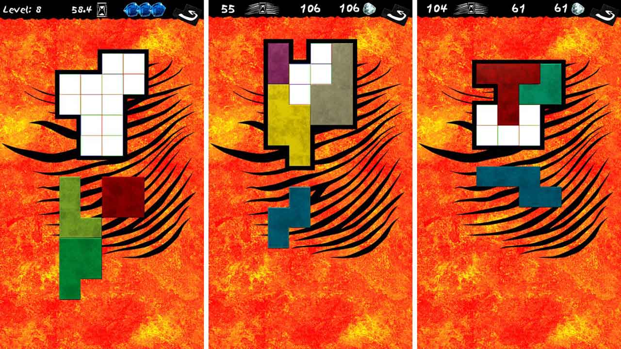 ئر حالت دوم دیگر خبری از رقابت و زود رسیدن نیست و شما به صورت تک نفره شروع به حل پازلی میکنید ه کمی نسبت به حالت اول سخت تر و پر درد سر تر است مثلا یک قاب کلی برای یک پازل دارید و چندین کاغذ رنگی که باید به صورت خاصی در قالب چیده شوند و ممکن است شما اشتباهات زیادی در این حالت بکنید به این دلیل که شما با کاغذ رنگی هایی سر و کله میزنید که هر کدوم با زاویه و شکل و شمایل خاص خودشون هستند و اگر مثلا یکی از آن ها اشتباهی چیده شود به اندازه ی کافی فضا برای چیدن دیگر کاغذ رنگی ها وجود نخواهد داشت و شما باید بار ها و بار ها اون ها رو عقب و جلو کنید و درست بچینید تا بلاخره پازل تمام شودو شما بتونید به مرحله ی بعدی این بازی بروید ، من به شخصه حالت دوم این بازی را بیشتر دوست دارم چرا که کمی چالش بر انگیز است و باید در انجام دادن مراحل آن کمی دقت به خرج دهید.