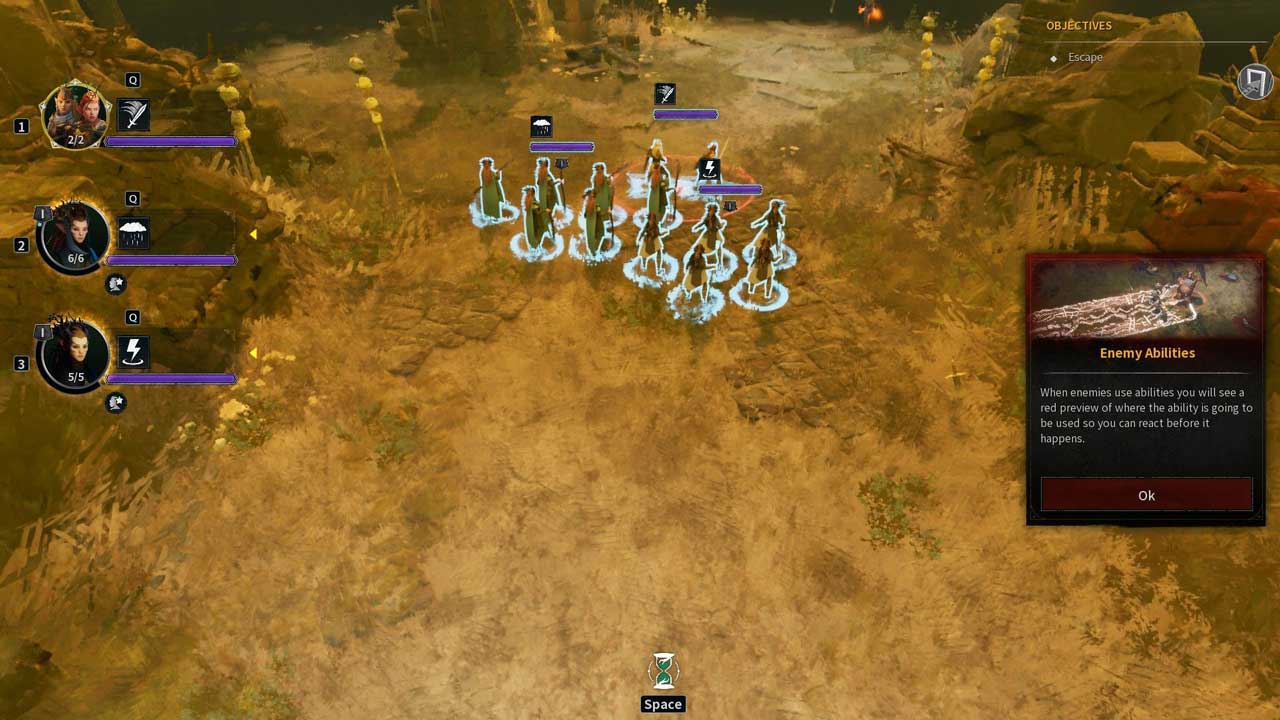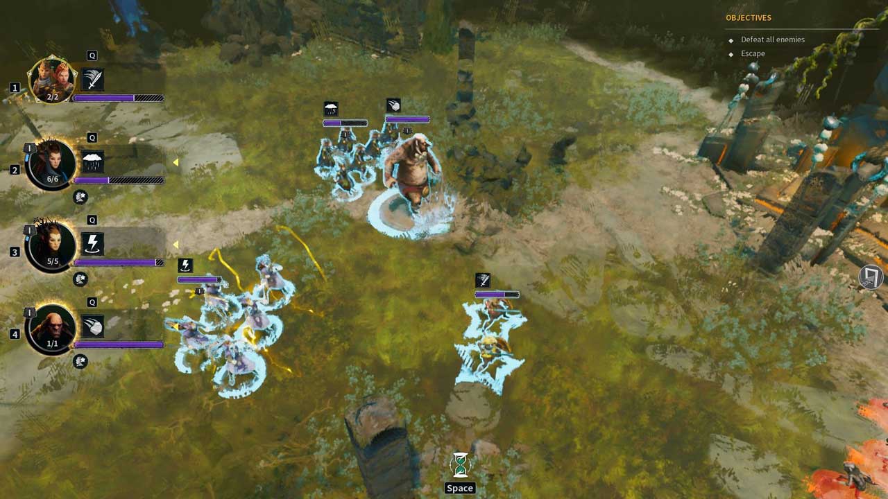 چالش اصلی Wartorn همانطور که در یک بازی RTS انتظار میرود، در نبردهایی نهفته است که توسط برخوردهای تصادفی ایجاد میشوند. شما باید بر اساس تواناییهای گروه و واحدهای موجود، با استفاده از همافزاییهای عنصری و ساعت شنی کندکننده زمان، استراتژیهای پیروزی را تدوین کنید. نبردها اهداف متنوعی دارند – فرار، دفاع از واگن یا رویارویی با غولها – اما فاقد عمق پویا و پیچیدگی استراتژیکی هستند که در ابتدا وعده داده شده بود.