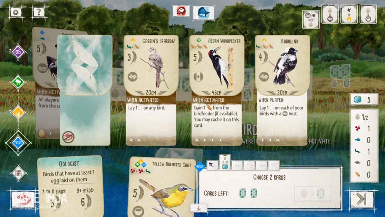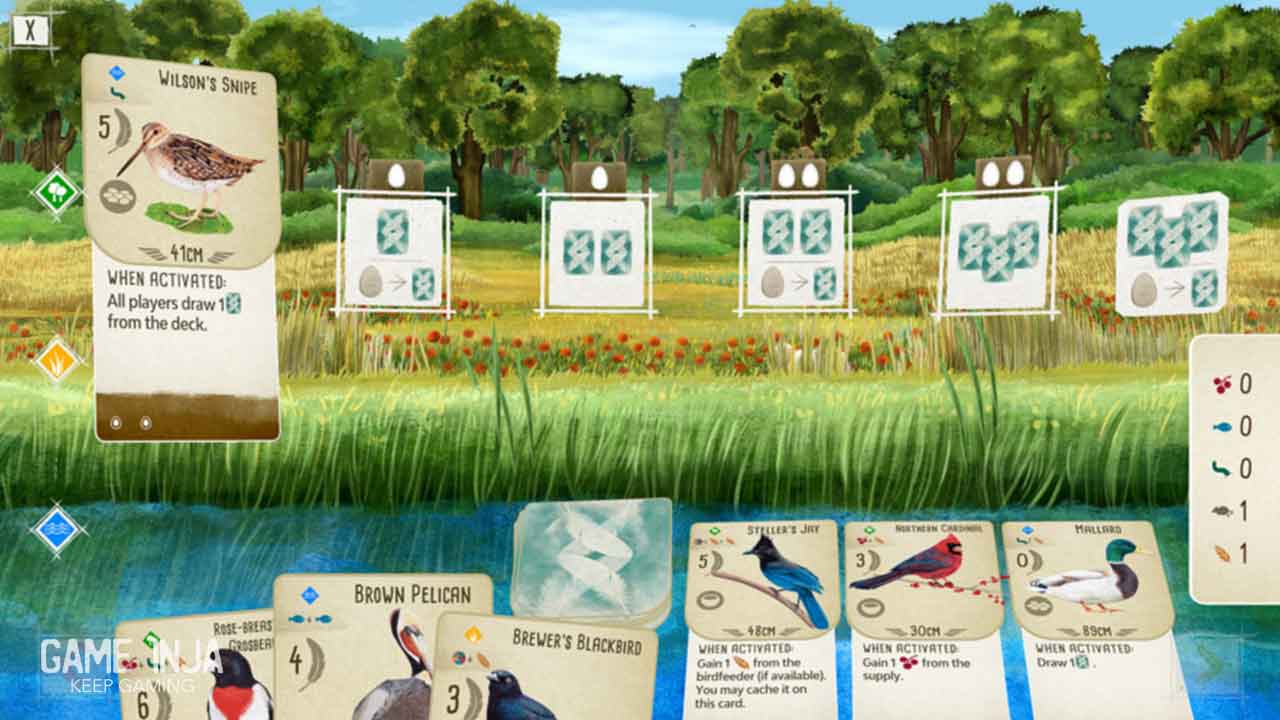مانند بازی شطرنج که باید قوانین و حرکت هر مهره از آن ها را بدانید تا بتوانید در محدوده خودش بازی کنید در Wingspan هم باید قوانین بازی و اطلاعات مربوط به کارت ها را کاملا فرا بگیرید. این اطلاعات در بازی در یکی از منوی های بازی به صورت آموزشی در اختیار شما قرار دارد. باید بدانید که به این گونه نیست که بخواهید اطلاعات خسته کننده ای را دریافت کنید تا بتوانید بازی را انجام دهید. هرگز! حتی فراگیری قوانین و نوع کارت ها در بازی بسیار سرگرم کننده است. البته برای یاد گیری بازی شاید نیاز به نیم ساعت تمرکز در بخش آموزش آن داشته باشید ولی با این حال بعد از بازی کردن آن گیم پلی اصلی بازی بسیار لذت بخش تر از آنچه تصورش را می کنید می شود.