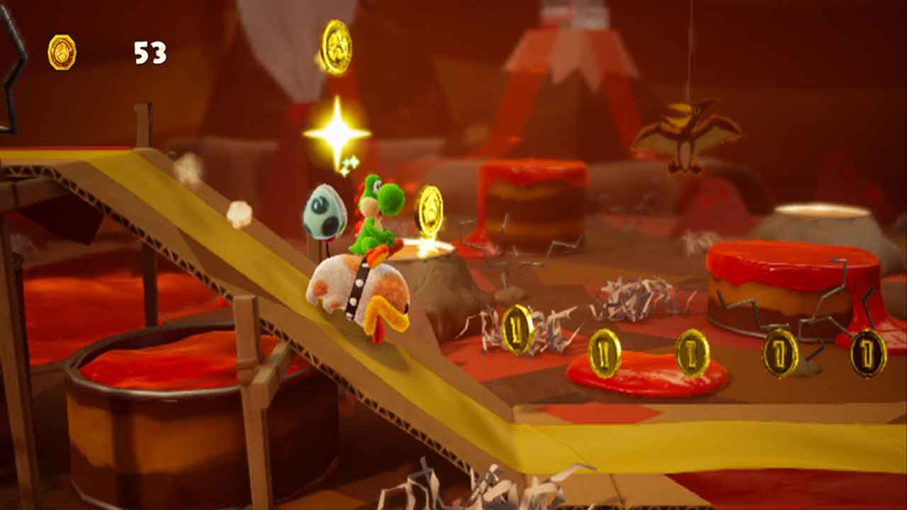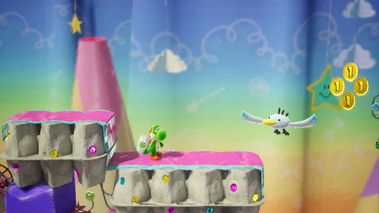 تمامی مواردی که در بالا به آنها اشاره شد در یک محیط دوبعدی جای گرفته است که درکنار یکدیگر یک تجربه لذتبخش را برای بازیکنان به ارمغان میآورند. بازی Yoshi’s Crafted World شاید نتواند بازیکنان حرفهای پلتفرمر را آنچنان که انتظار میرود، درگیر کند اما تجربه آن برای این قشر از بازیکنان خالی از لطف نیست؛ چرا که میتوانند با این بازی استراحتی داشته باشند و صرفا از محیطهای رنگارنگ و پلتفرمهای ساده لذت ببرند. البته در نظر داشته باشید که صرفا پشت سر گذاشتن مراحل با سرعت بالا در این بازی بیفایده است چرا که شما باید امتیازات کافی یا همان گلهای خندان و سکهها را برای راهیابی به مراحل بعدی جمعآوری کنید. در غیر این صورت باید برگردید و با دقت کامل گوشهوکنار هر مرحله را بگردید و آیتمهای مورد نیاز را جمعآوری کنید.