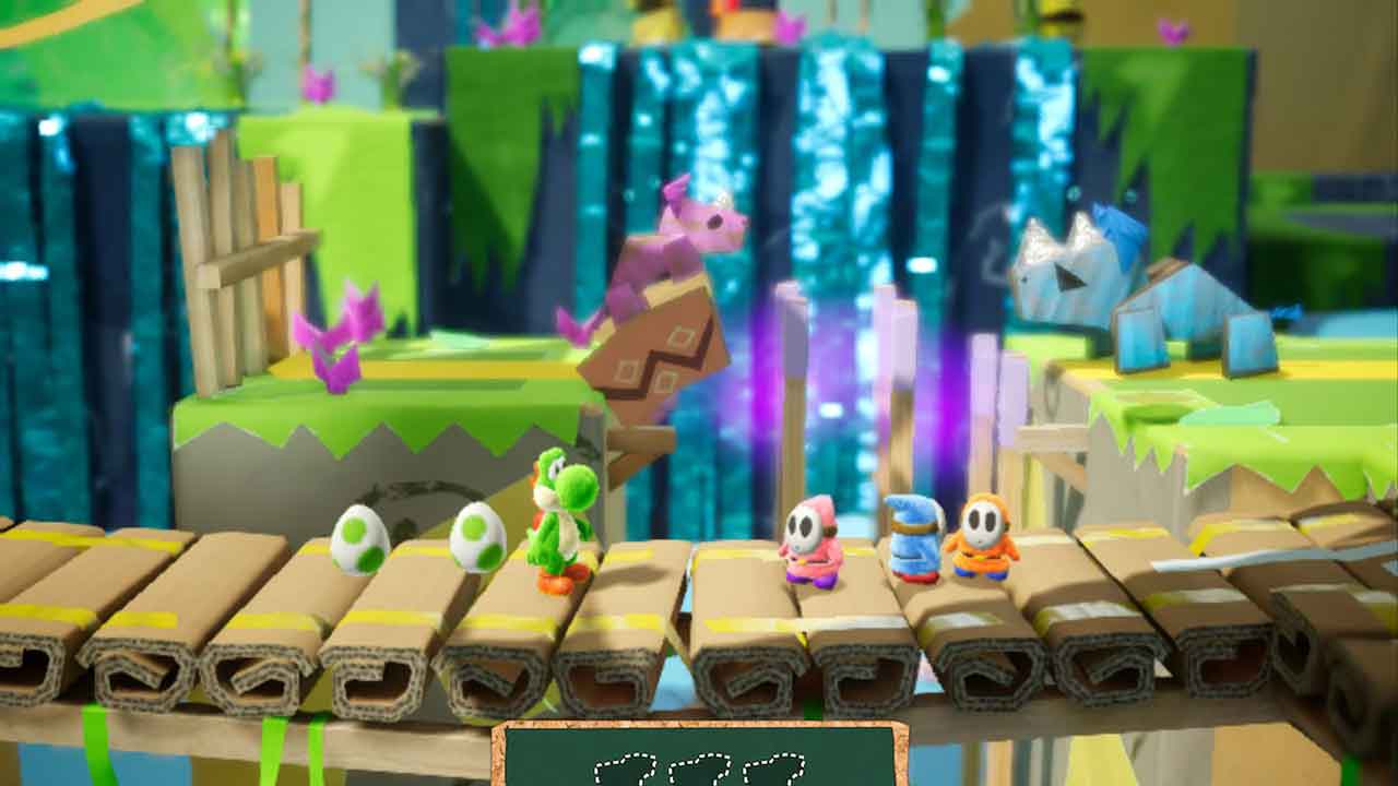 تکلیف بازی Yoshi’s Crafted World مشخص است؛ یک گیم پلی ساده و روان در سبک سایداسکرولینگ و ۲.۵ بعدی. بنابرین نباید از این بازی توقع یک گیم پلی چالشبرانگیز داشته باشید چرا که اکثر مراحل را میتوانید بدون هیچ زحمتی پشت سربگذارید. اما در نظر داشته باشید که سادگی مراحل به معنای یک گیمپلی خستهکننده نیست و اینجا میتوانید مهارت سازندگان را احساس کنید. سازندگان در طراحی مراحل این بازی از المانهای مختلفی استفاده کردهاند که همین موضوع باعث شده است که بازی روند تکراری به خود نگیرد. درکنار ساختار اصلی این بازی یعنی «گیمپلی پلتفرمر» شاهد المانهای مختلف و سرگرمکنندهای نیز هستیم.