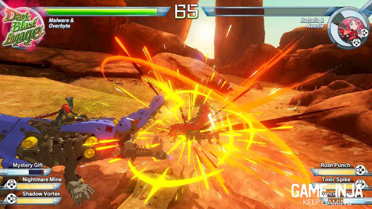 وقتی در باره گیم پلی صحبت می کنیم بازی Zoids Wild: Blast Unleashed برای هر کارکتر محدودیت ها و مزایایی را قرار داده . به طور مثال رپتور و یا دایناسور ها سرعت بالا تری در انجام لول ها و حتی راه رفتن دارند ولی ضربه ای دریافت می کنند بیشتر است . در مقابل حشرات ضربه کمتری دریافت می کنند ولی قدرت حمله پایین تری دارند . با این که بیشتر بازی کنندگان بین سن 6 تا 12 ساله هستند نوع بازی می تواند کمی سخت باشد . چون با توجه به تعداد کارکتر ها بی اندازه قابلیت و قدرت های عجیب برای بازی طراحی شده .در سمت پایین سمت چپ سه قابلیت قابل رویت می باشد که هر موقع به حد نصاب رسید می توانید از آن استفاده کنید . بعضی کارکتر ها می توانند همان موقع ضربه را بر روی حرف اجرا کنند بعضی ها با مسموم کردن در طول بازی باعث کشتن حریف در طول بازی خواهند شد . به همان اندازه که در بازی برای حمله قابلیت طراحی شده برای دفاع هم قسمت های مختلفی ساخته شده است که در info بازی کاملا توضیح داده شده است . در هنگام بازی هر چقدر تعداد ضربه های پشت هم بیشتر شود نمودار بالای سمت چپ کارکتر که دور آواتار طراحی شده می تواند پر شود و به شما قابلیت حمله ناگهانی می دهد که مثل فینیشر یا حرکت پایانی عمل می کند و ضربه هولناکی به حریف وارد می کند . در نهایت برنده کسی است که بتواند دو راند را ببرد . برد هایی که در بازی داستانی بدست می آورید باعث می شود زوید Zoid های جدید و قهرمانان بیشتر را از حالت قفل خارج کنید و بتوانید با آنها هم بازی کنید . جدا از این که کارکتر های لاین داستانی خودشان را دارند ولی کارکتر هایی که با یکدیگر خوب نیستند در طول بازی داستان های هماهنگی دارند که به جذابیت بازی Zoids Wild افزوده است .